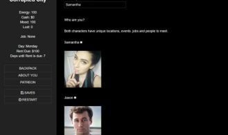 Corrupted City is a choice based sandbox. You can play as male or female with each character having different locations, characters and storylines. As Samantha you recently moved to a small town wi...