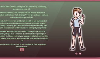 X-Change Life is a daily life Twine RPG based in a universe where it’s normal to take over-the-counter, gender swapping pills that last 24 hours (or more).​