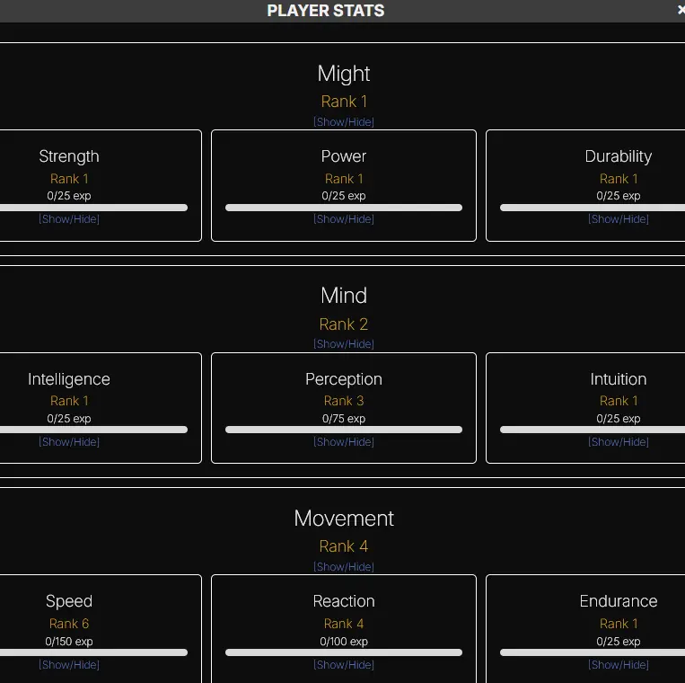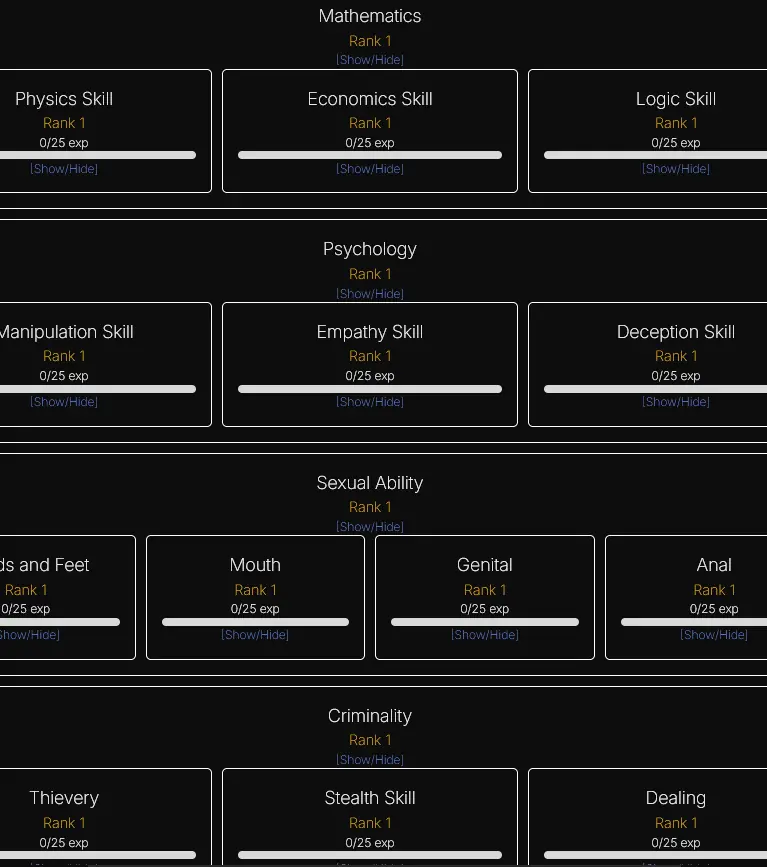 Stats and Skills overhauled! Each Stat and Skill now also includes multiple substats/subskills. Updated Sidebar UI. Now including icons!Solve math theorems/conduct psych experiments for the Institute for money!