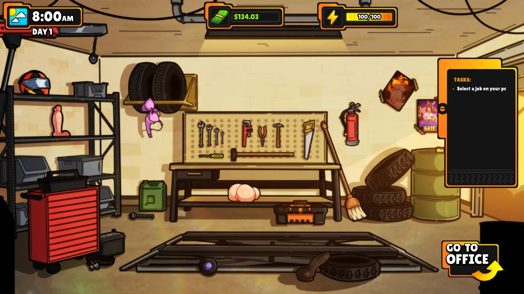 Ana’s Auto Fellatio is a hand-drawn 2D adult mechanic simulator and visual novel starring the futanari protagonist Ana. Manage a car repair shop, take on repair jobs, enjoy erotic CGs, and balance business, time, and self-pleasure in a sandbox experience.