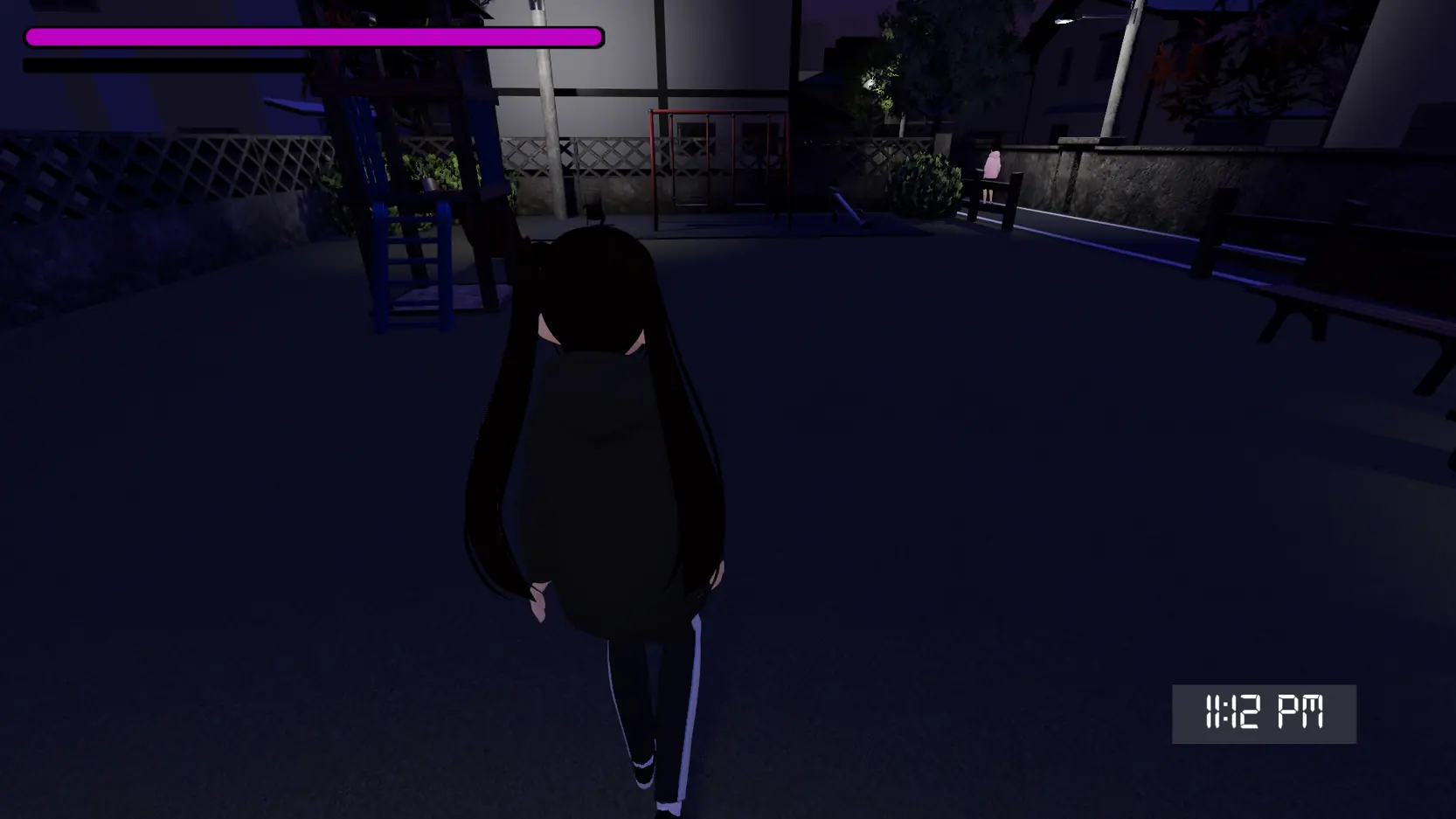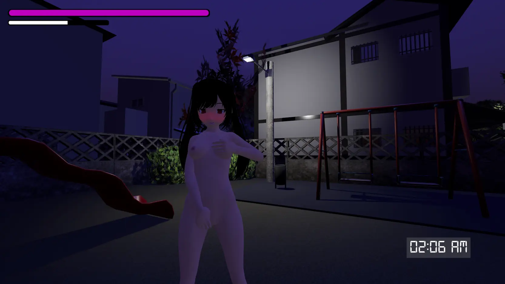 For now player only able walk around a small map. Azuka can walk around naked and avoid being seen by others. When Azuka is being seeing by others naked, she will lose her C P (Confident Point). If Azuka run out of C P, GAME OVER!​