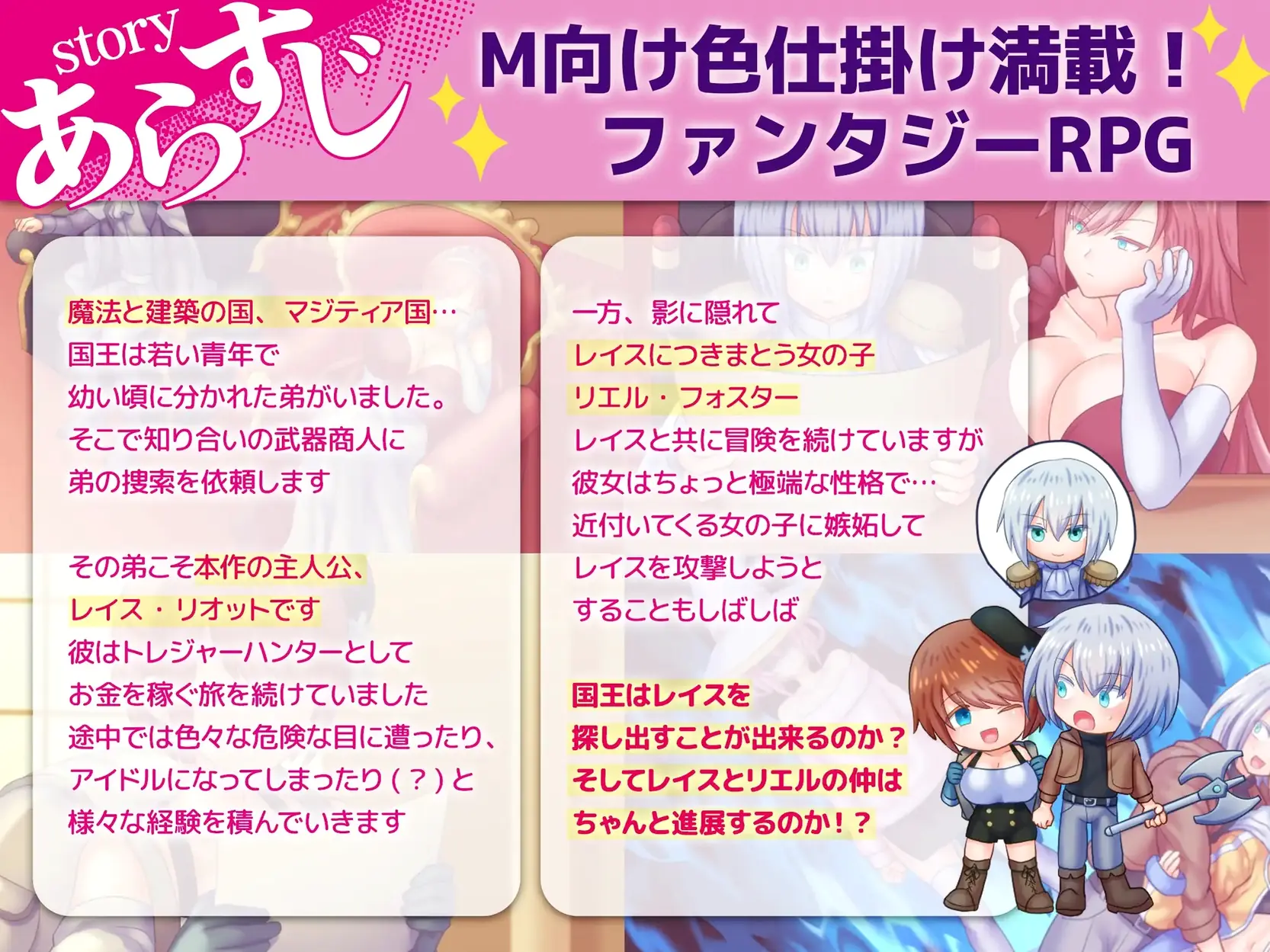 Unaware of his brother’s inquiries, Lace continues his reckless adventures, stumbling into deceptive and erotic traps across various lands in pursuit of riches.