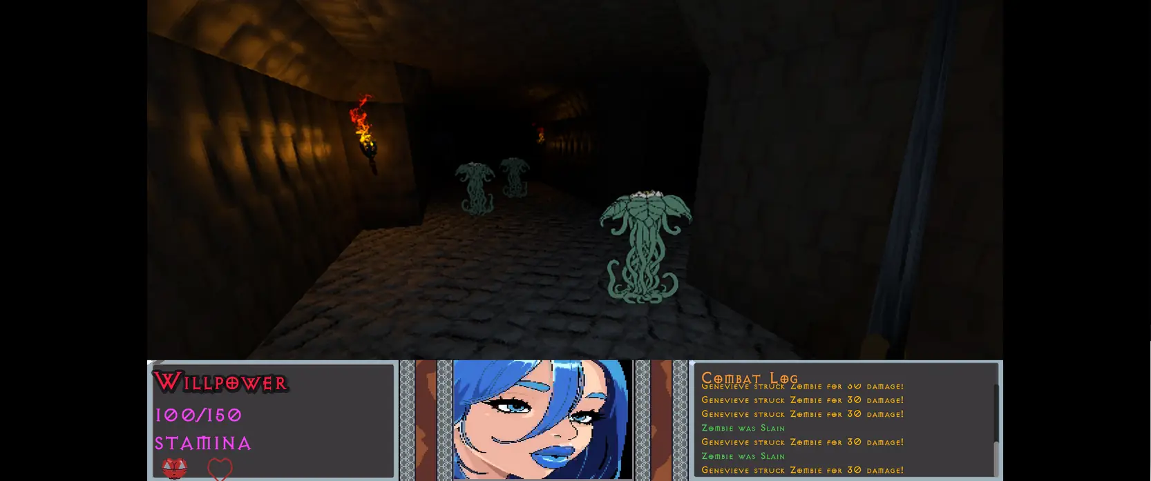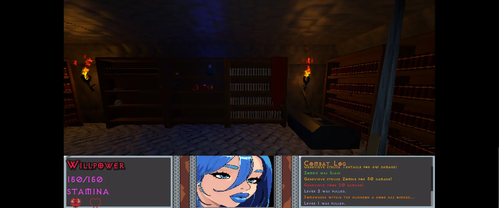 Genevieve was once a proud and righteous paladin, protecting the weak and the fair, she was pious, she was just, until one day a dark figure approached the abbey. He was tall. He was uncomfortably attractive. He carried an aura of lustful despair. This wizard placed a curse upon the fair paladin when she rightly rejected his lustful and downright creepy advances, now every suit of armor she or any of her companions don will transform into impractical, scandalously minimal bikini armor. The only way to break the curse is to climb the evil wizard Fondelmere’s depraved dungeon of debauchery and ascend his castle to defeat him at it’s peak. Though the castle is as depraved as its master and Genevieve is not handling her sexual awakening with the restraint a paladin normally would.​
