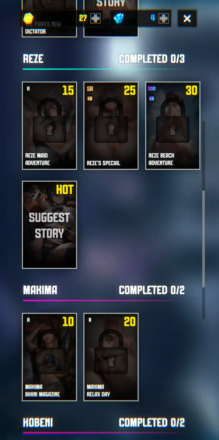 Collect character decks, upgrade their abilities, and unlock new scenes as you progress. Simple clicker mechanics blend with gacha progression, rebalancing systems, and visual rewards.​
