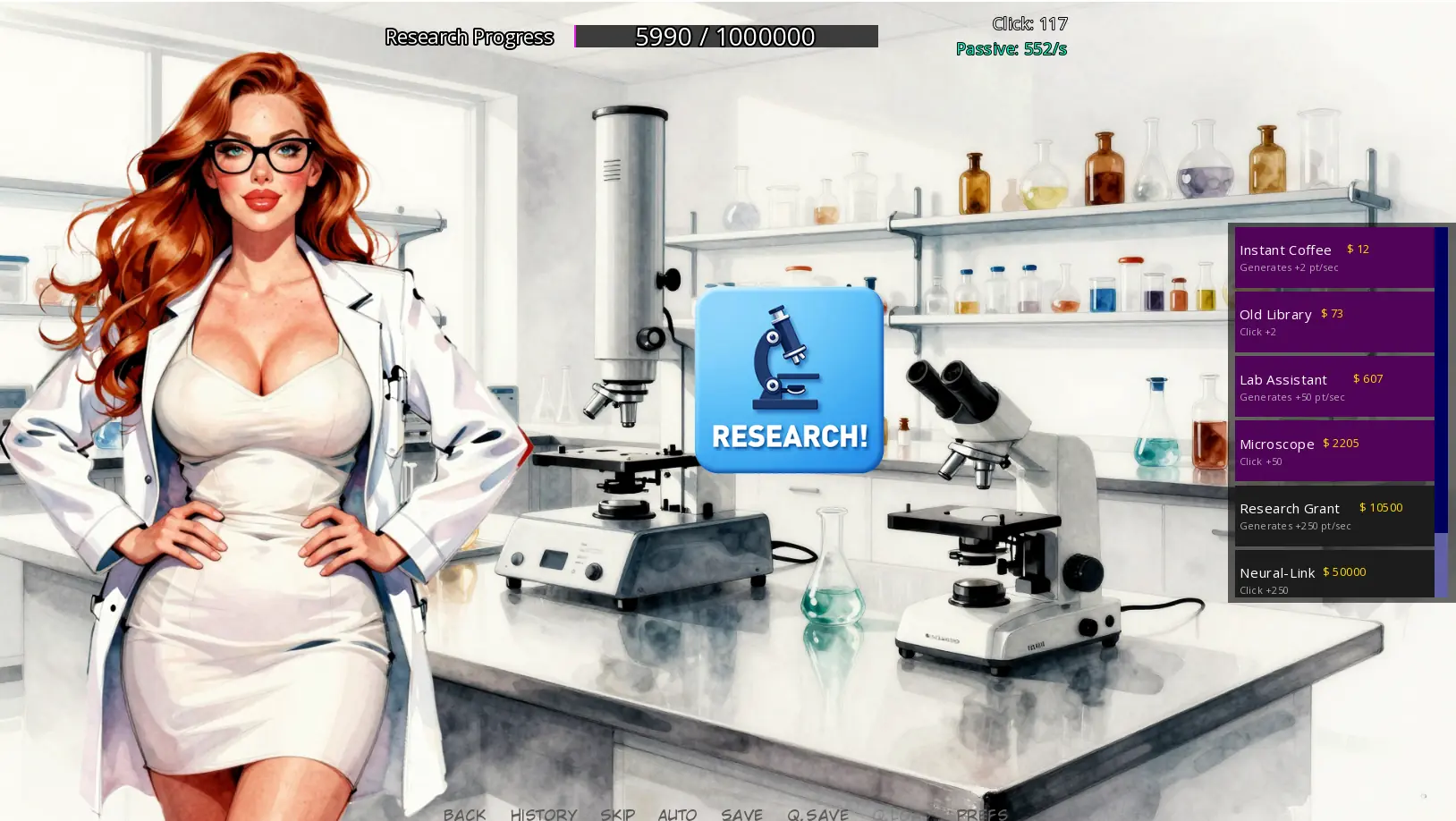 A fun little Ren’Py clicker game in development! Help this quirky scientist uncover the steamy links between health and sex! Watch her transform into the healthiest (and hottest) version of herself <3!​