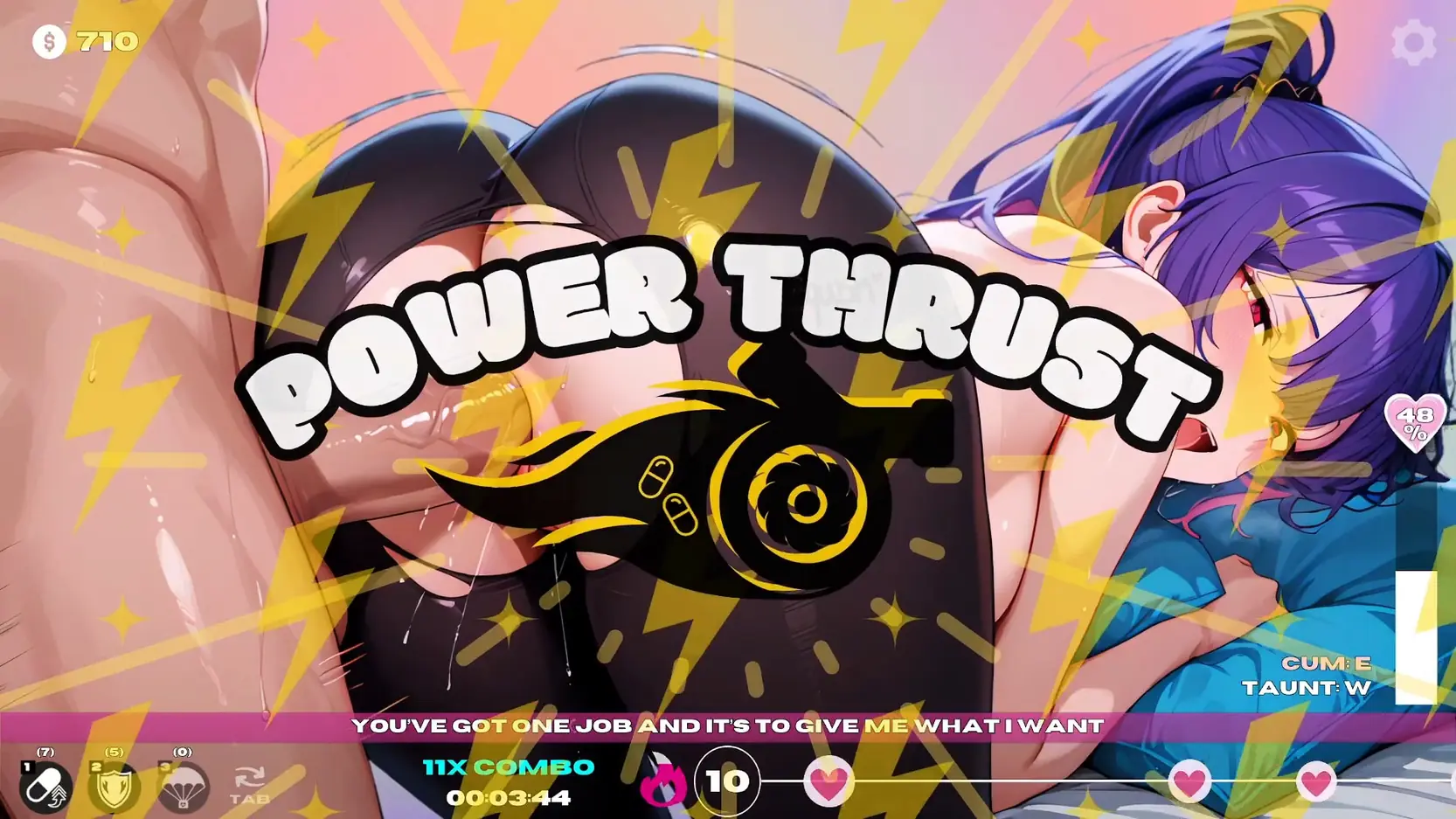 - Cum Meter Overhaul β No more RNG; stroking, defeating enemies, and using items all charge the meter. Hit 100% to trigger a 60-second climax window