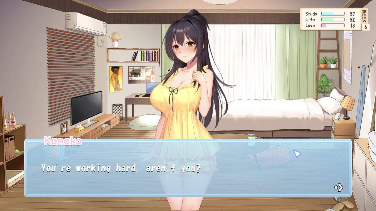 The protagonist begins cohabiting with his girlfriend, Kanako Tsukishima, whom he started dating in college. Compared to their sweet romance, living together presents many practical challenges. Players must plan their daily lives, balancing academics, lifestyle, and romance.