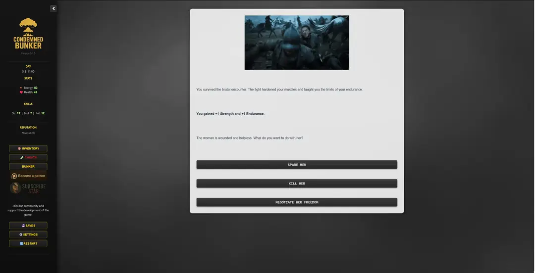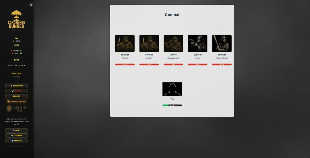 Condemned Bunker is a short, replayable 18+ survival game where every day is a struggle to endure inside a sealed shelter after a nuclear catastrophe.