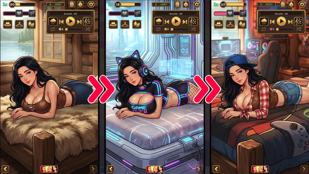 Customize characters, collect lewd scenes, and enjoy a mix of relaxing beats and ambient erotic sounds.