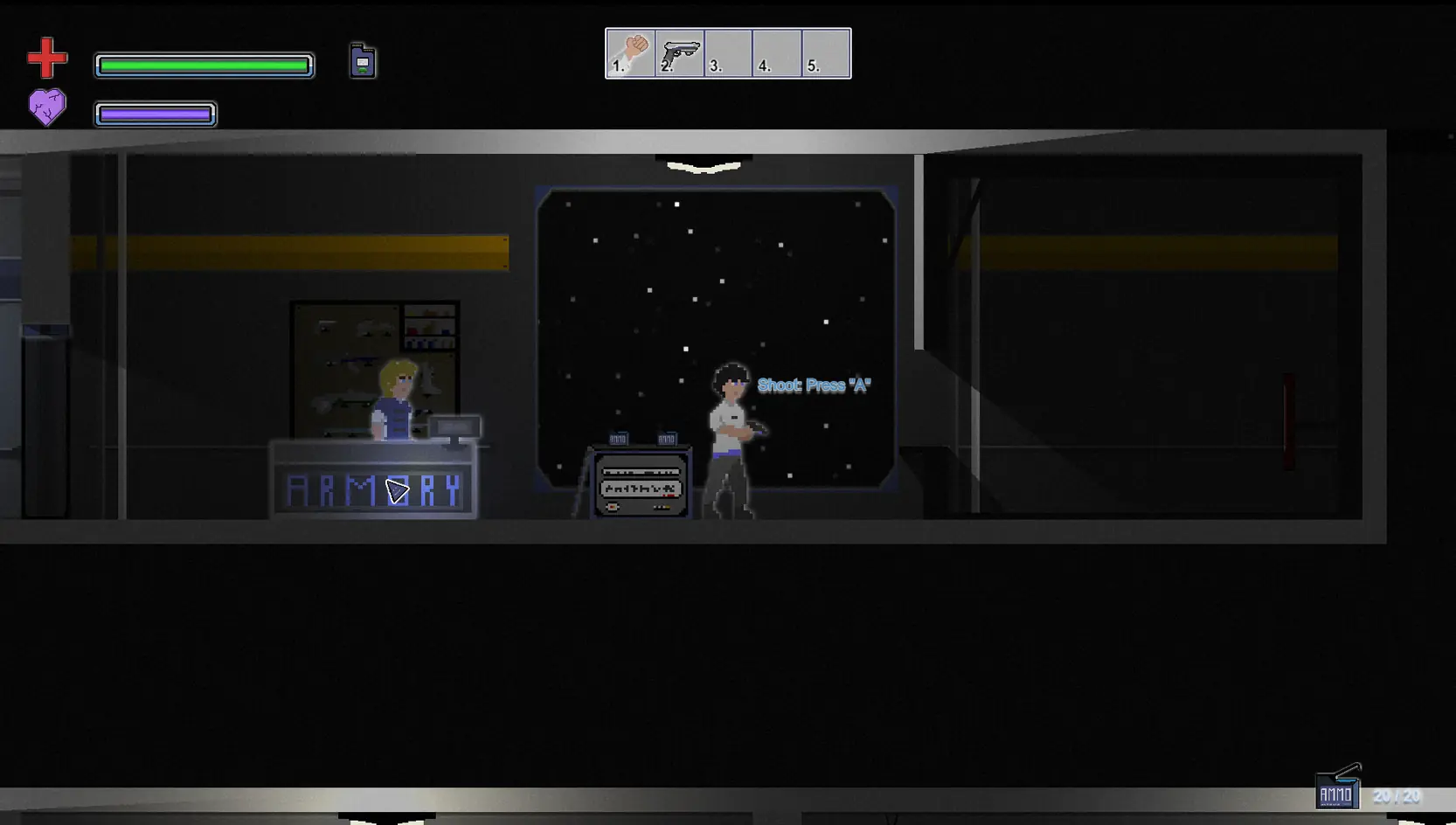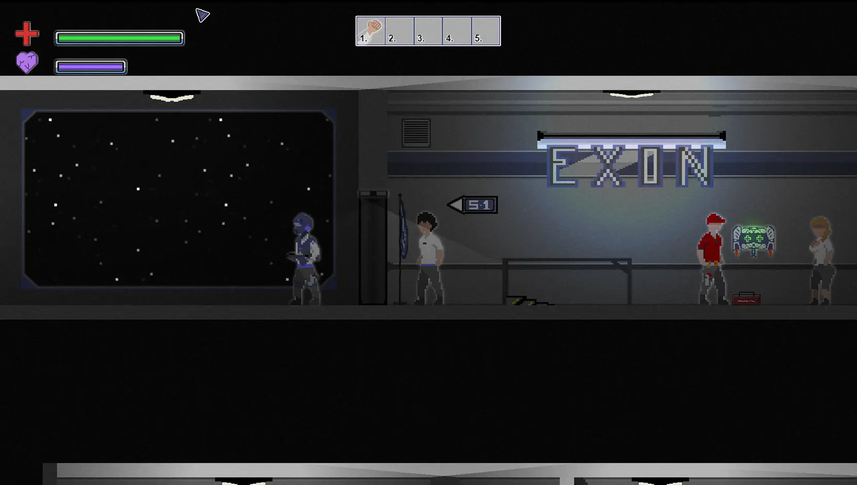 EXON is a 2D pixel art game. Your goal is to save your ship from a parasitic alien invasion that will attempt to reproduce with the human host.​