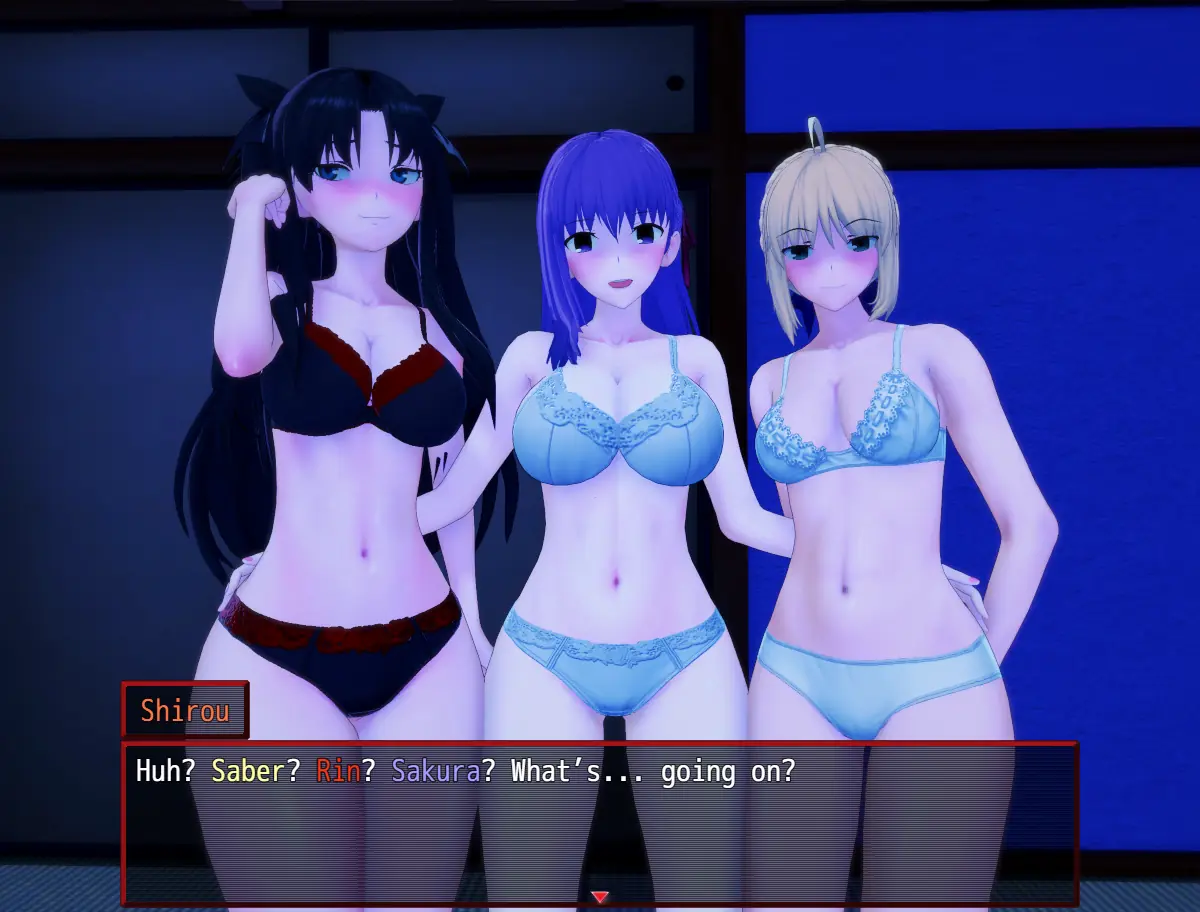 Emiya Shirou fought in the Holy grail war, and had emerged victorious in more ways than one. Not only had his enemies been defeated, but he had emerged with 3 girlfriends, Saber, Rin, and Sakura. They, along with Rider, Illya and Taiga now live at the Emiya residence, as the new school year is about to start.