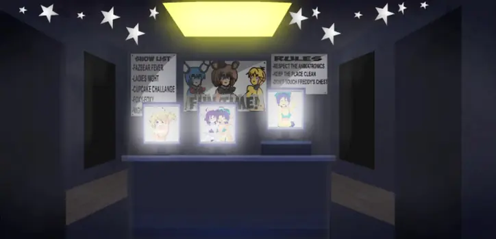 Welcome to your new career at Freddy’s Anime Convention! You will play as the security guard working the night shift, surrounded by a group of sexy animatronic girls. But, these girls like to play a little to rough with security guards like you, so a major chance of death might be an issue. Watch the cameras, and fend away any animatronics who try to get in your office! But, beware. Run out of power, and a new problem will arise…​