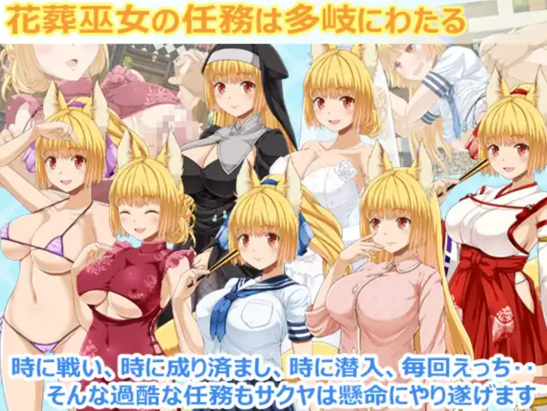 The heroine, “Sakuya,” is the “Flower Burial Shrine Maiden,” who can return tsukumogami to their original item forms by having sex with them.