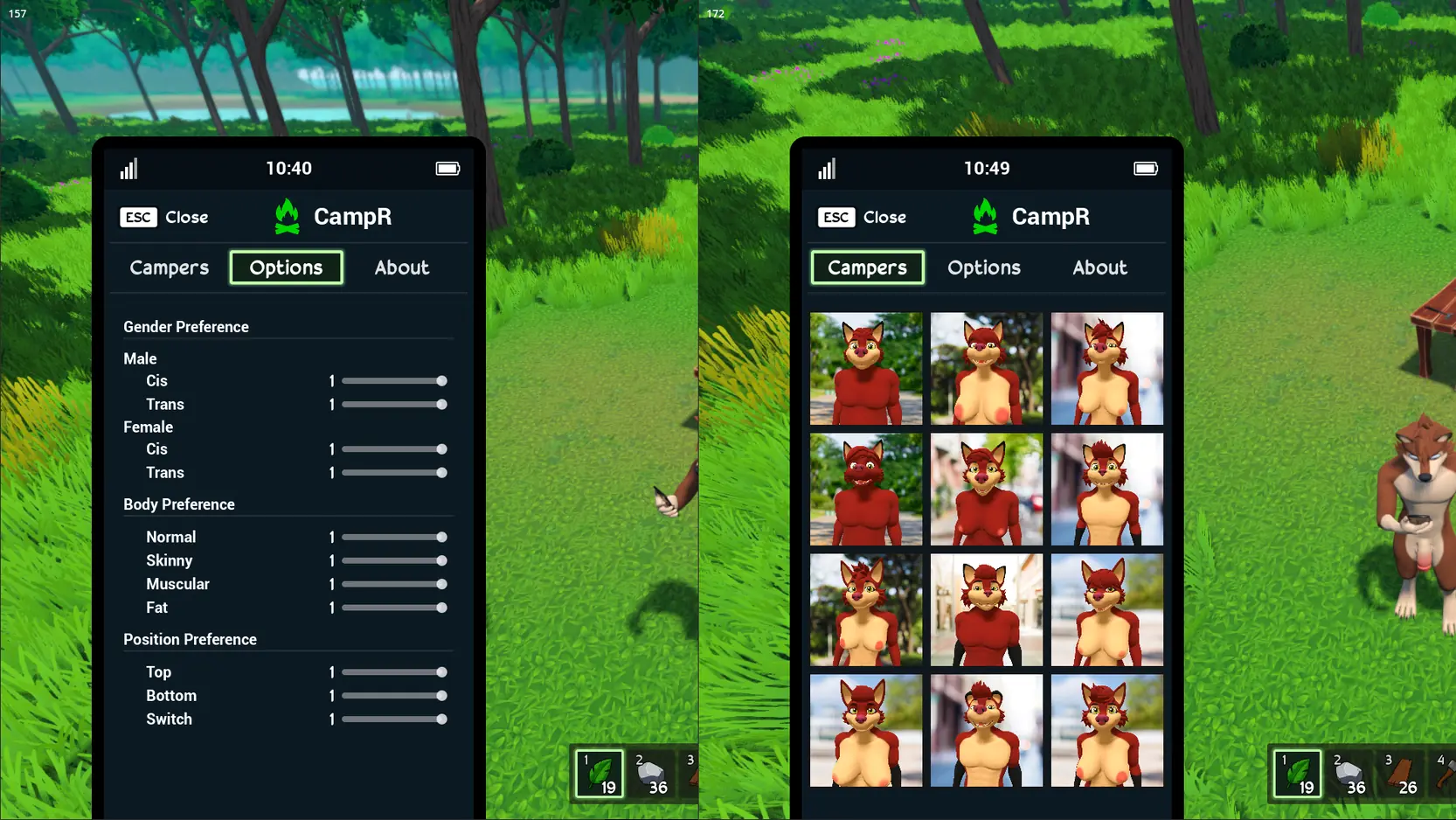 Furry Camp is a 18+ survival/base building/social simulator game (Similar to games like Animal Crossing, Stardew Valley and Don’t Starve), there’s still lots to be done for it to take the shape I’m aiming for.​