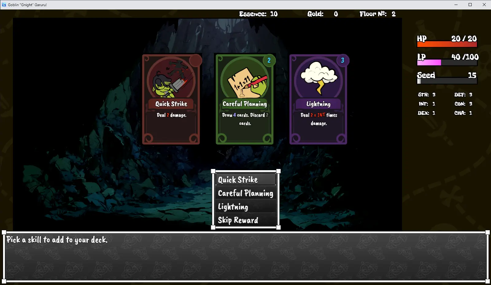 Every run is different! Build your deck, gather “seed” and unlock powerful upgrades to help you beat the game.