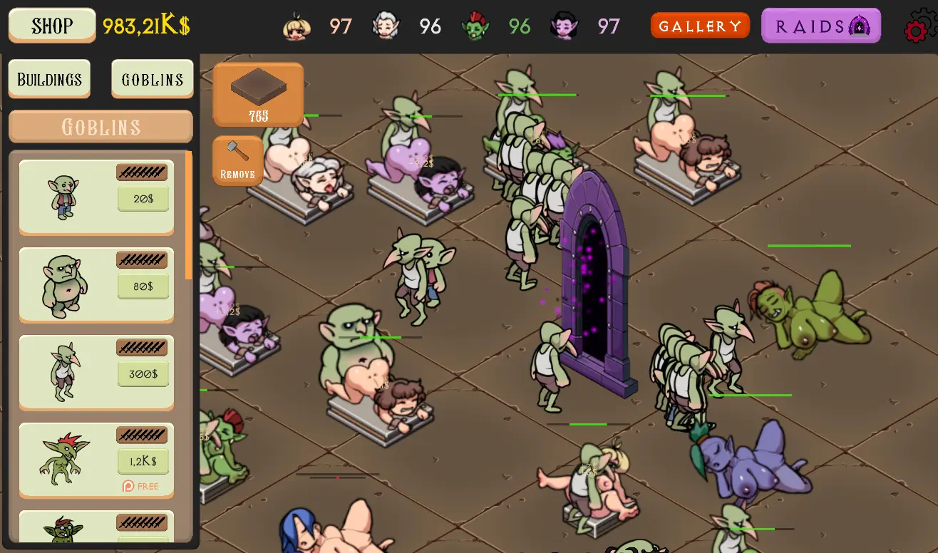 Get more women to give birth to more and more goblins for your goblin empire!​
