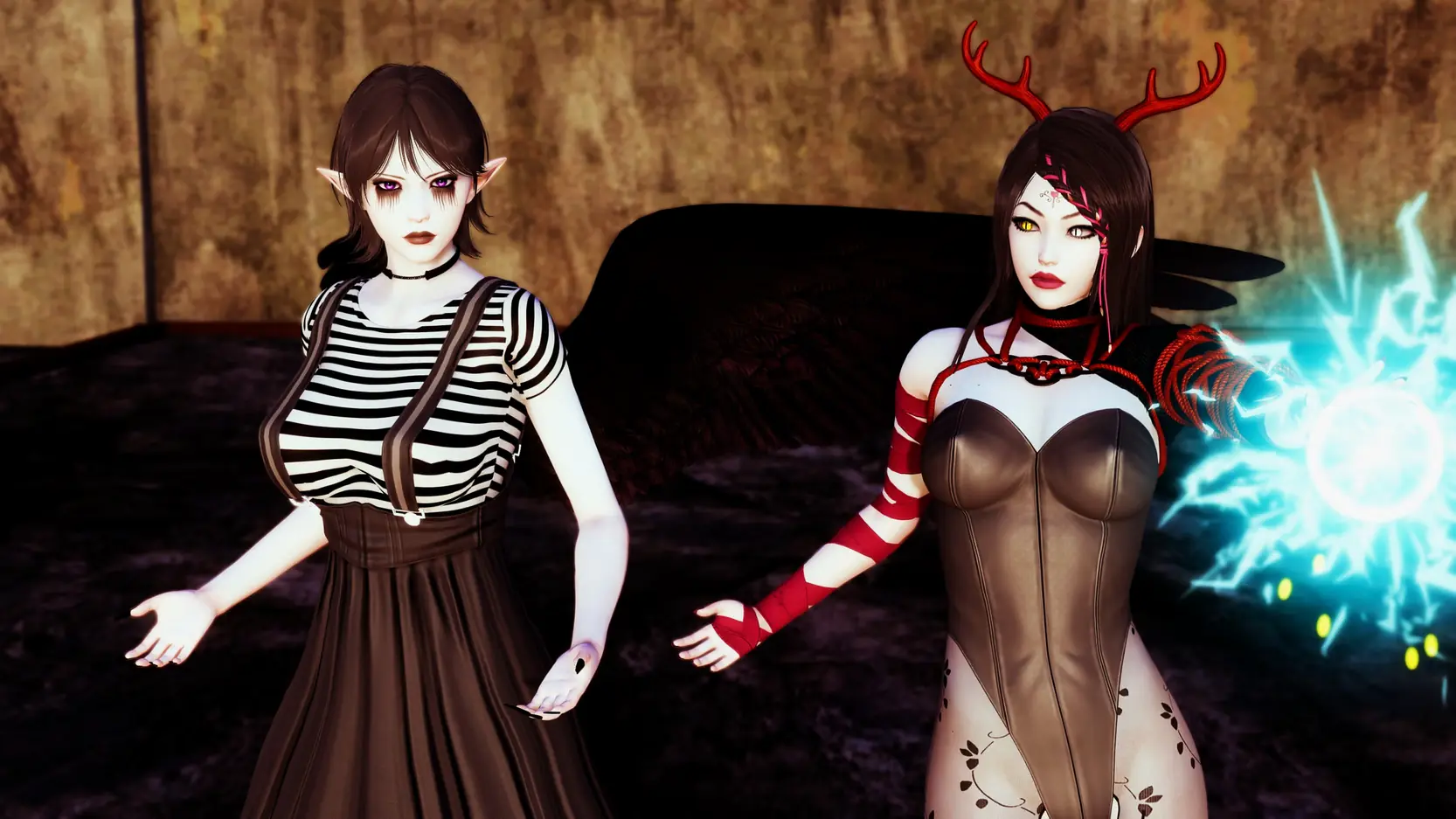 You play as a big tiddy goth futa who is also an elf and partly a crow. Hunted by bad memories and being afraid of overusing her underworld power Darci Nightshade (you can change the first name) is trying to find her place in the “Avalonian society”. GothHouse is the spin-off of FurrHouse. Playing FurrHouse recommended but not required. I made some notes about the “Avalonian Universe” here and there.​