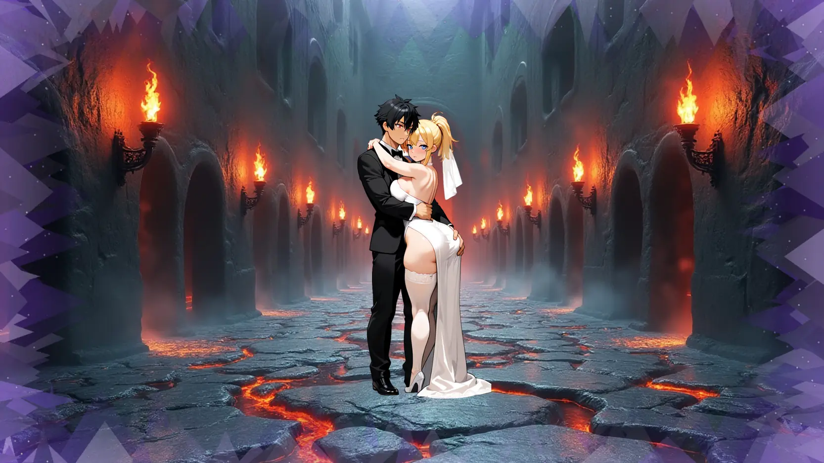 Heavenly Vows, Hellish Temptations is a story driven Ren’Py visual novel about a newly married couple whose perfect, heavenly vows slowly get tested in hell by temptation, doubt and desire. This is a purely NTR, corruption, cuckold angst and mild humiliation based VN. If this is not your cup of tea, avoid this VN. NTR is not avoidable. If this is however your kink and you want to experience that made by someone who is living the lifestyle, you should definitely give this a go.​