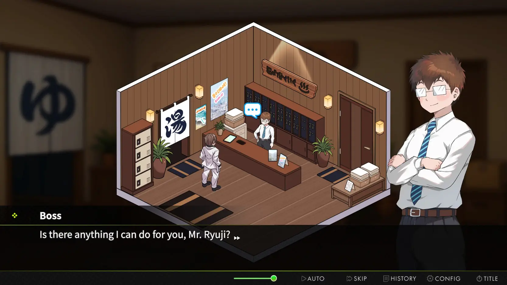 To manage his finances and treat his condition, he takes over the management of the Tenryuu Bathhouse.