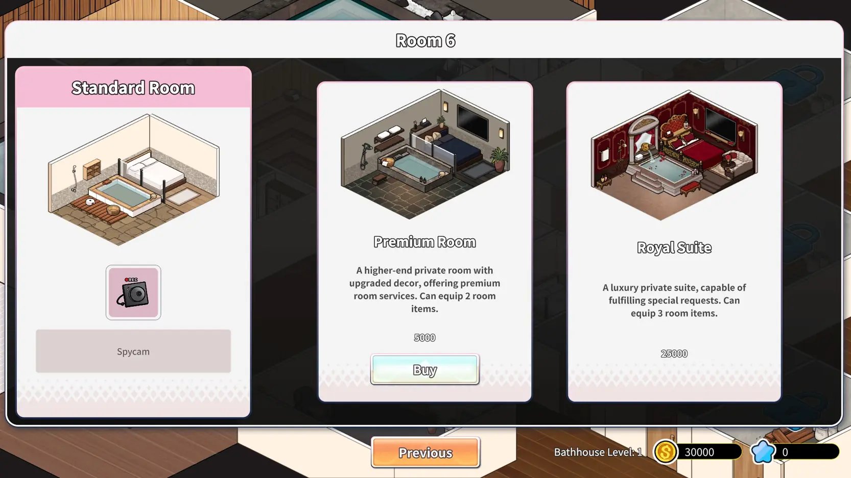 By earning income through the bathhouse, he upgrades its interior, expands services, and raises its reputation to attract a wider range of customers.