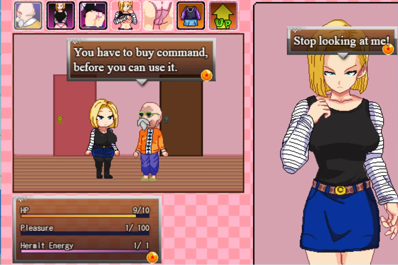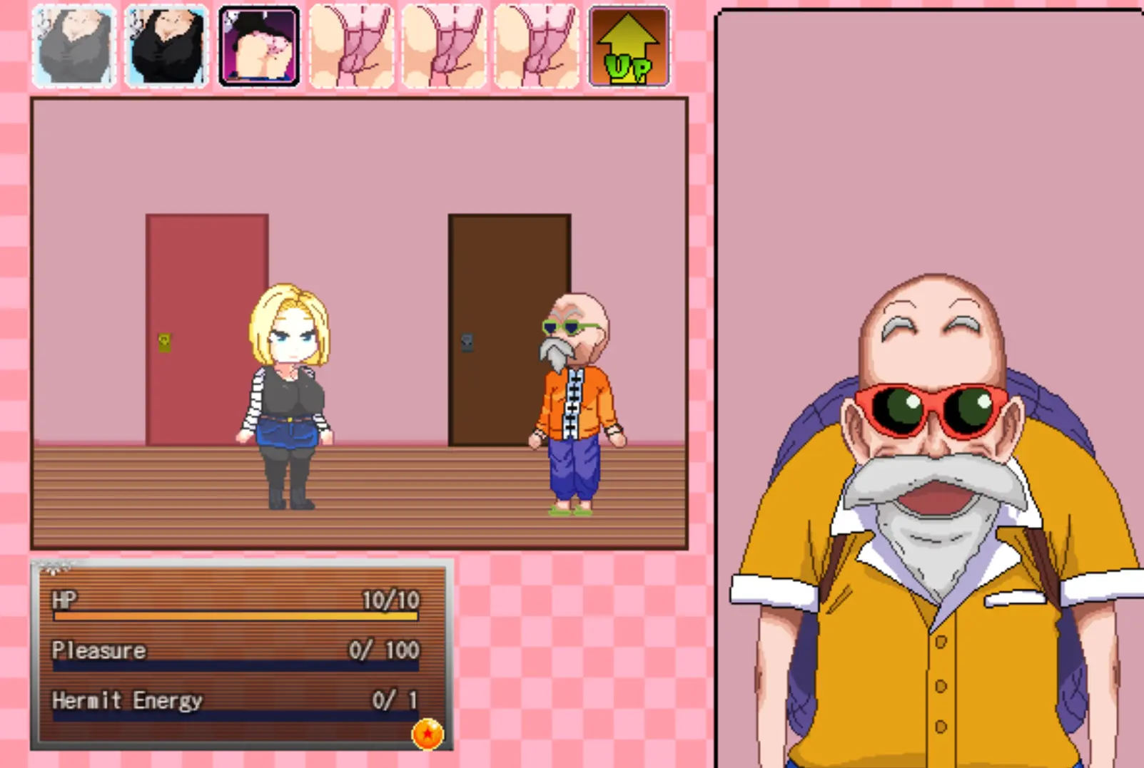 This parody game with alternative timeline. Made by adapting a lot of adult comics about Android and Roshi.