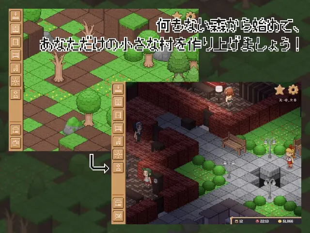 Start with an empty forest and build your own little village!​
