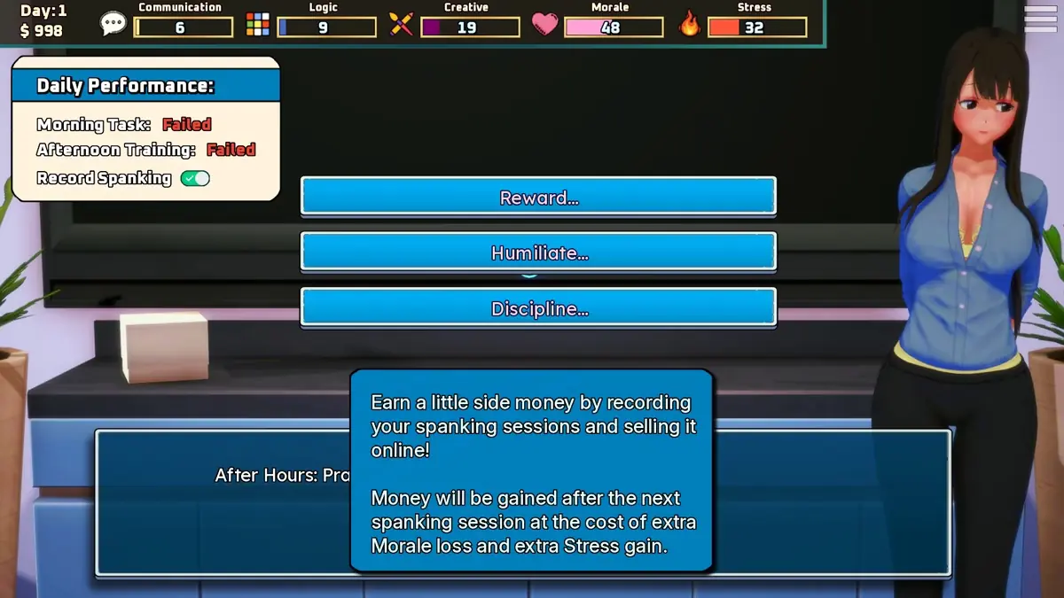 Will you shape Misaki into a successful employee… or ruin her before the month is over?​