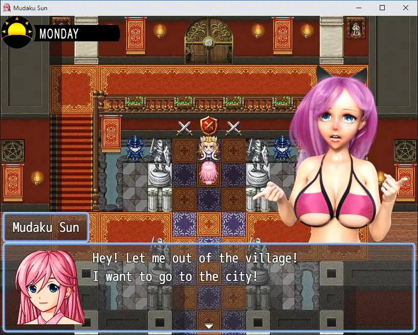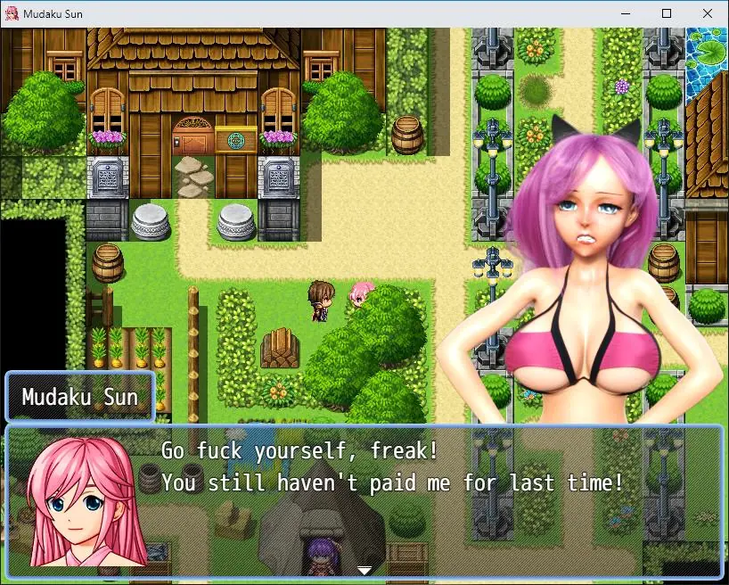 Mudaku Sun, a village slut, is tired of entertaining the village boys! She wants to go to the city to find rich clients! But here’s the problem—strange monsters have surrounded their village! They won’t let anyone through! No one can enter or leave the village! Mudaku Sun will have to find another way out of the city! Or go through a forest full of strange monsters! May her big tits help her in this! The game is currently in development! Want to help? Join our community! *Warning: the game contains profanity and dark humor! Not recommended for the easily offended!