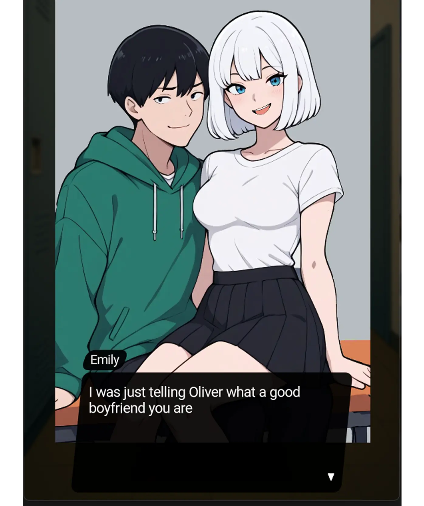 Ours To Share is about exploring fantasies together with your girlfriend. After gathering courage, you decide to tell your girlfriend about your fetish, intrigued, she agrees to try it. After all, being freshmen in a University is all about experiments and trying new things. The game’s main themes are netorase/hotwife, with focus on consent and mutual respect.​