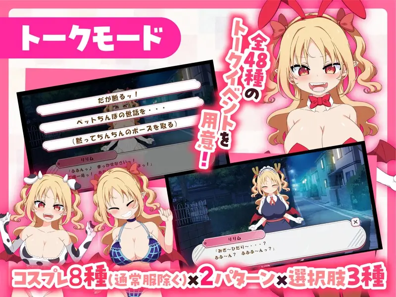 Evening. You, a tired salaryman, are on your way home from work when you bump into Lilim (CV: Gemiko Yamada), a succubus who has just arrived from another world.