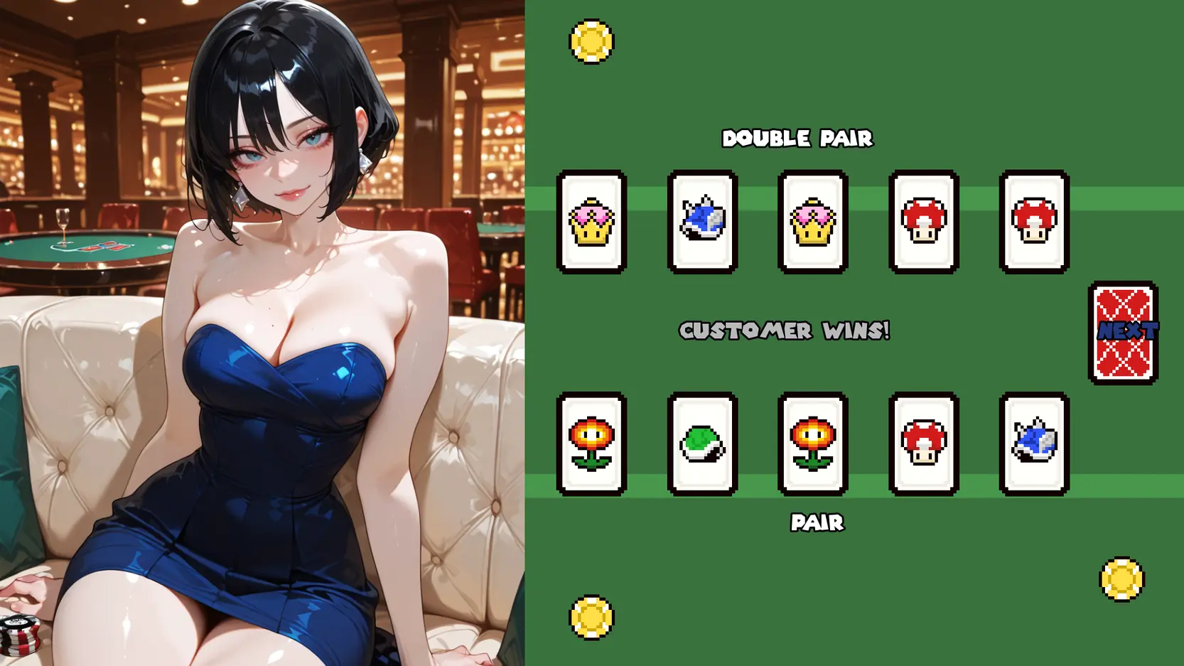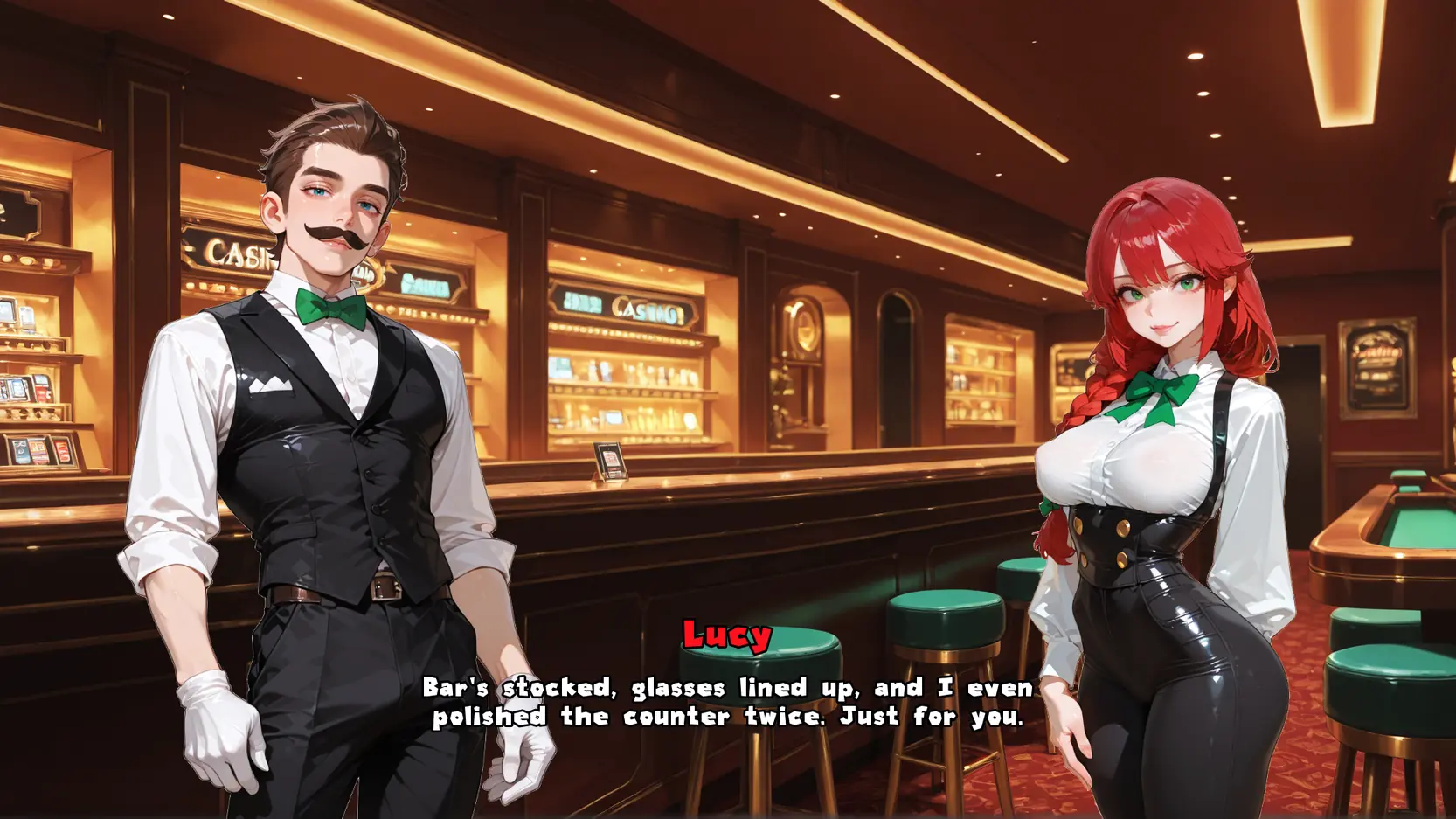 You play as Lucio in a Visual Novel centered around his casino and playing poker. He’s just opened a new casino, but keeping it afloat won’t be easy.​