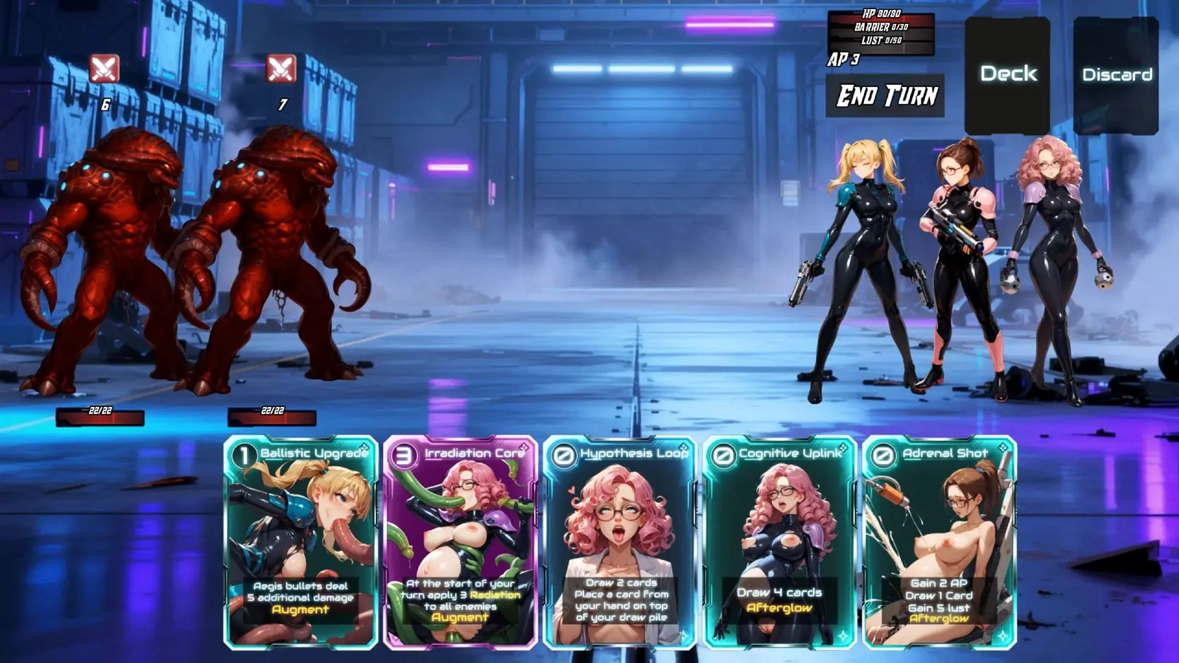 Project Exilium – Breeding Protocol is a sci-fi, roguelike deck-builder inspired by Slay the Spire, where strategy and NSFW collides.