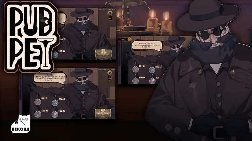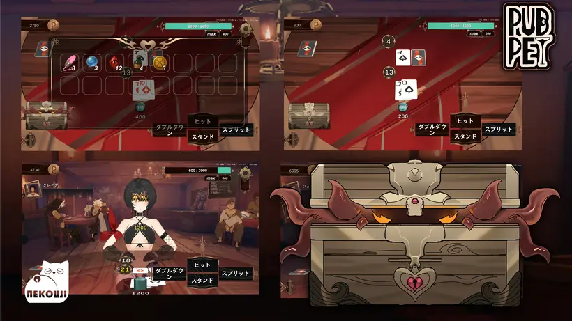 Now living quietly in a small-town tavern, he faces off against three heroines in card battles.