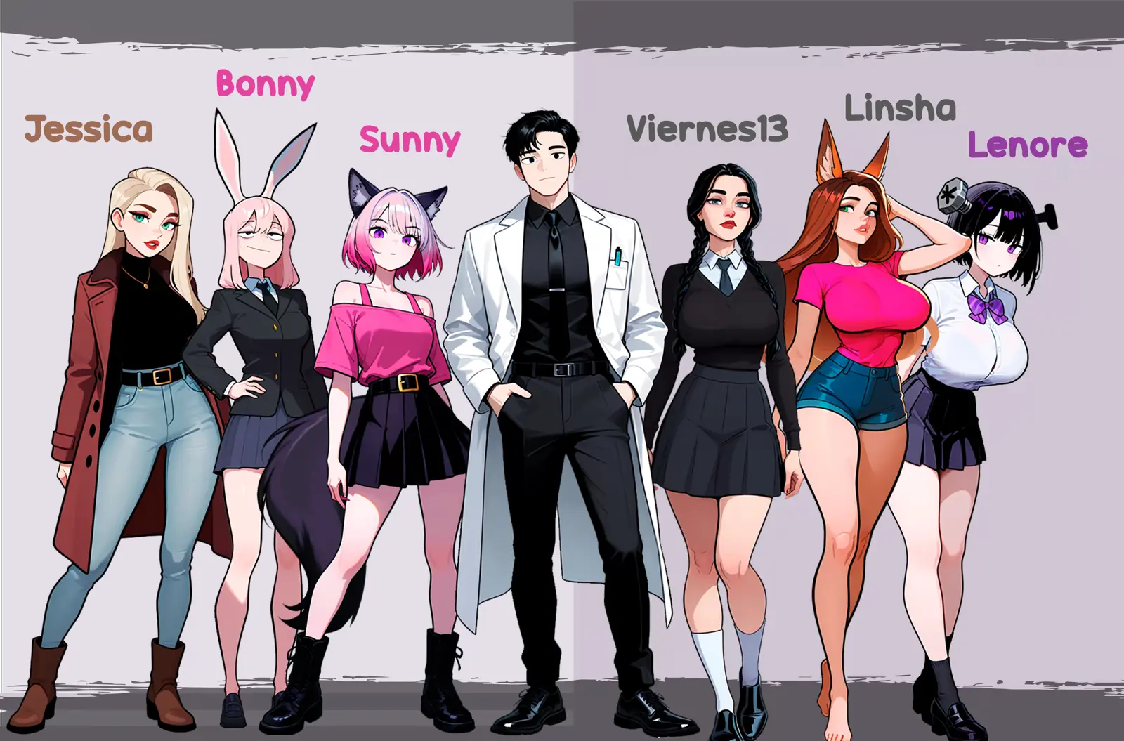 Hentai parody game and visual novel with turn-based battles. Explicit adult content: sex, violence, and inappropriate language. Fictional characters for humorous purposes.
