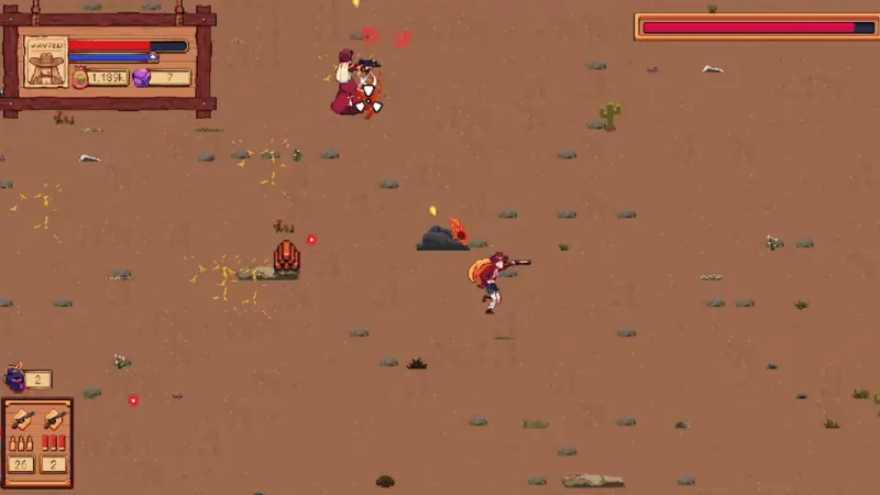 A top-down looter shooter with fast-paced battles, customizable weapons, and comic book inspired pixel-art visuals. Grab a gun and use your special abilities to liberate the cattlepunk west!​