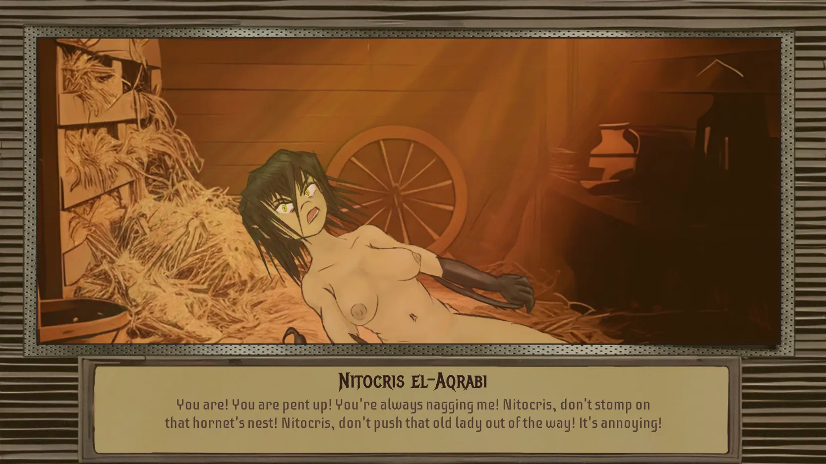 Nitocris is a tomboy scorpion girl with violent and psychopathic tendencies. Psychopathic tendencies which the MC is well-acquainted with. She proves her untrustworthiness and terrible nature by the day. However, though she may be objectively evil by nature and not capable of redemption, she is also hot. So there’s like, some moral grayness to be had here.