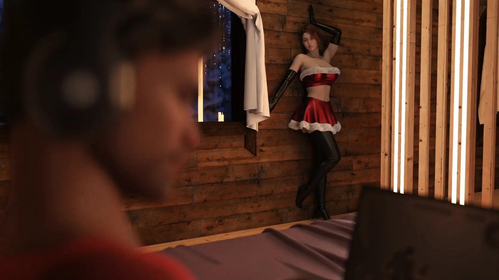 Fresh off a fruitless shopping spree to spice up her sexless marriage to gamer husband Mark, Bridgette slips into her skimpiest Santa-babe getup, determined to drag his addicted ass back to reality. But when a midnight crash downstairs turns her cozy cabin into Santa’s secret naughty-list workshop, things go from “ho ho ho” to “holy fuck” in record time.