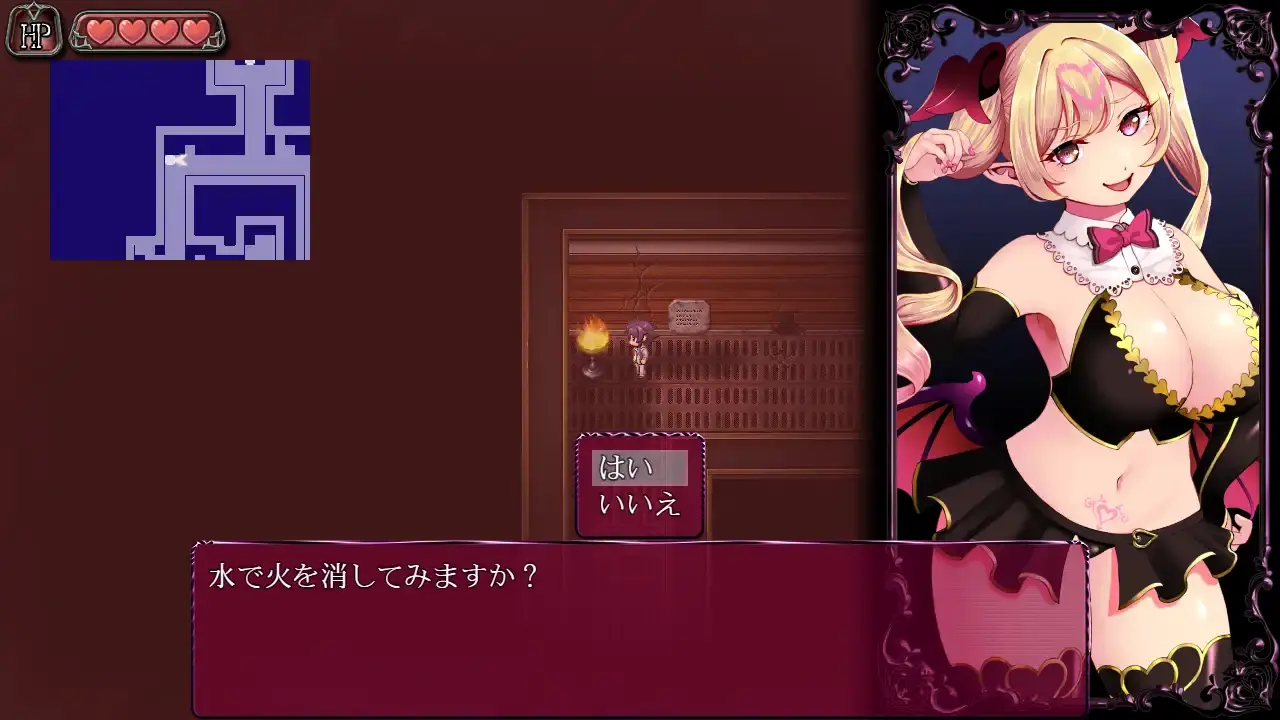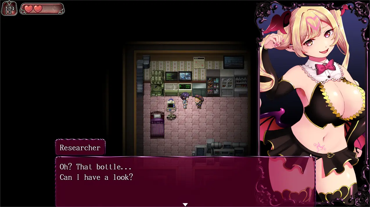 Translator Notes:This game has a bug regarding the endings. There doesn't seem to be a way to legitimately unlock the alternate ending scene. The DLSite page states that the unlock requirement is revealed at the end, but I don't see a way to reveal the alternate ending requirement in-game. Even when fulfilling the requirement, it doesn't seem to trigger. Due to this oversight/bug, a full save folder is included next to the Game folder. Move the folder "save" into the "www" folder to unlock the extra ending scene in the gallery (Succubus Defeatedâ‘¡).
