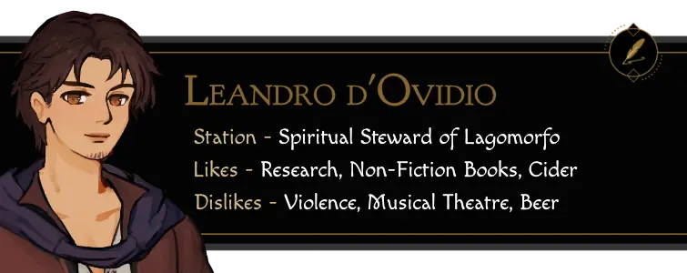 The holder of this paper is hereby initiated in the Order of the Golden Quill, pending the successful outcome of a probationary period. He is to replace the retiring Monsignor Bondini as Castle Lagomorfo’s spiritual steward, in service to the Lagomorfo family and the community.