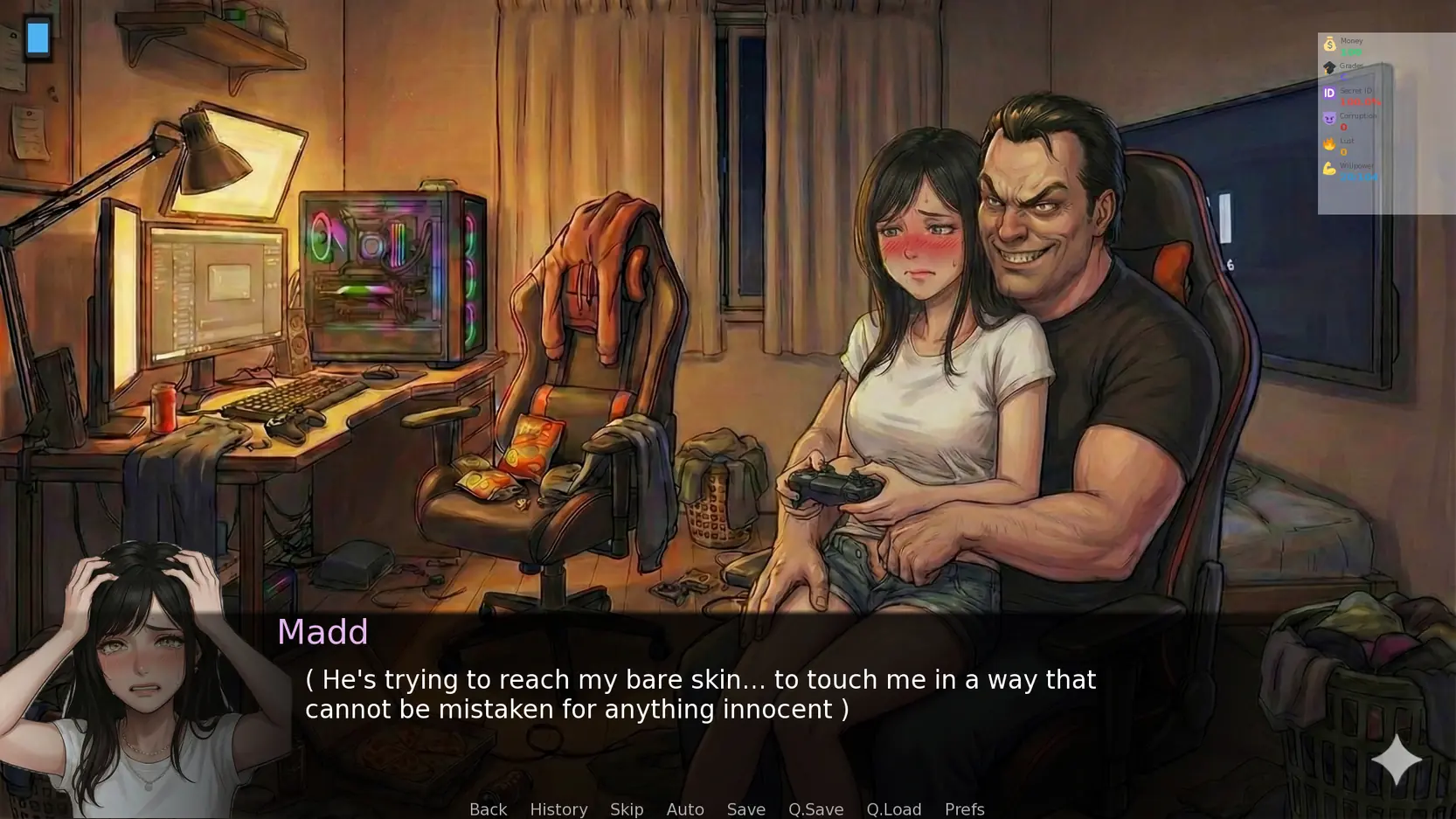 You take Control of Madd, A girl living with her StepBrother and stepfather after her mother recently passed away. You have always dreamed about being an engineer, but your current environment is unsafe ,with your stepfamily invading your space and coercing you into bad situations. So you decide to run away from your house, but you don’t have enough money to pay for school and live in a good environment, so you disguise yourself as a boy to live in a boys-only dorm. You start at your home before all this, planning your escape away from your step family.