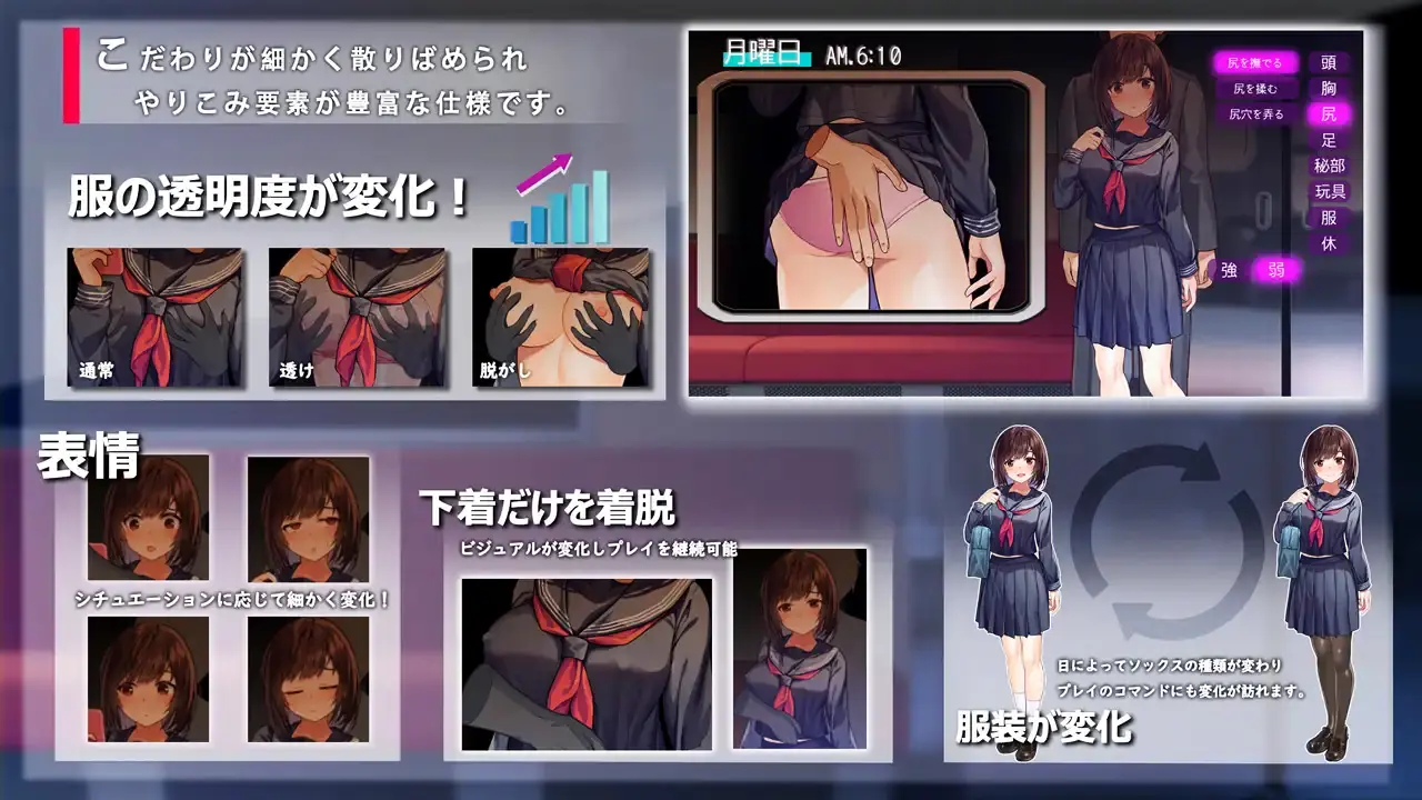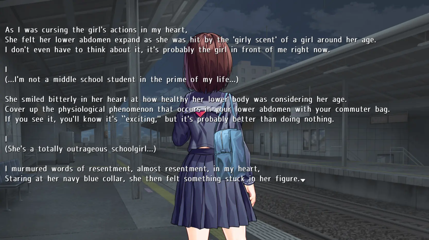 Our protagonist spends his days monotonously commuting between his workplace and home. Worn out by the hard work and with his judgement clouded, he ends up groping a girl who happens to be on the same train. Taking advantage of the fact that she doesn’t make a fuss or scream, he runs his fingers over her body the next day, and the day after that. It’s Friday. Having once again thoroughly enjoyed the girl’s body, he gets off the train with a refreshed look on his face, but…​