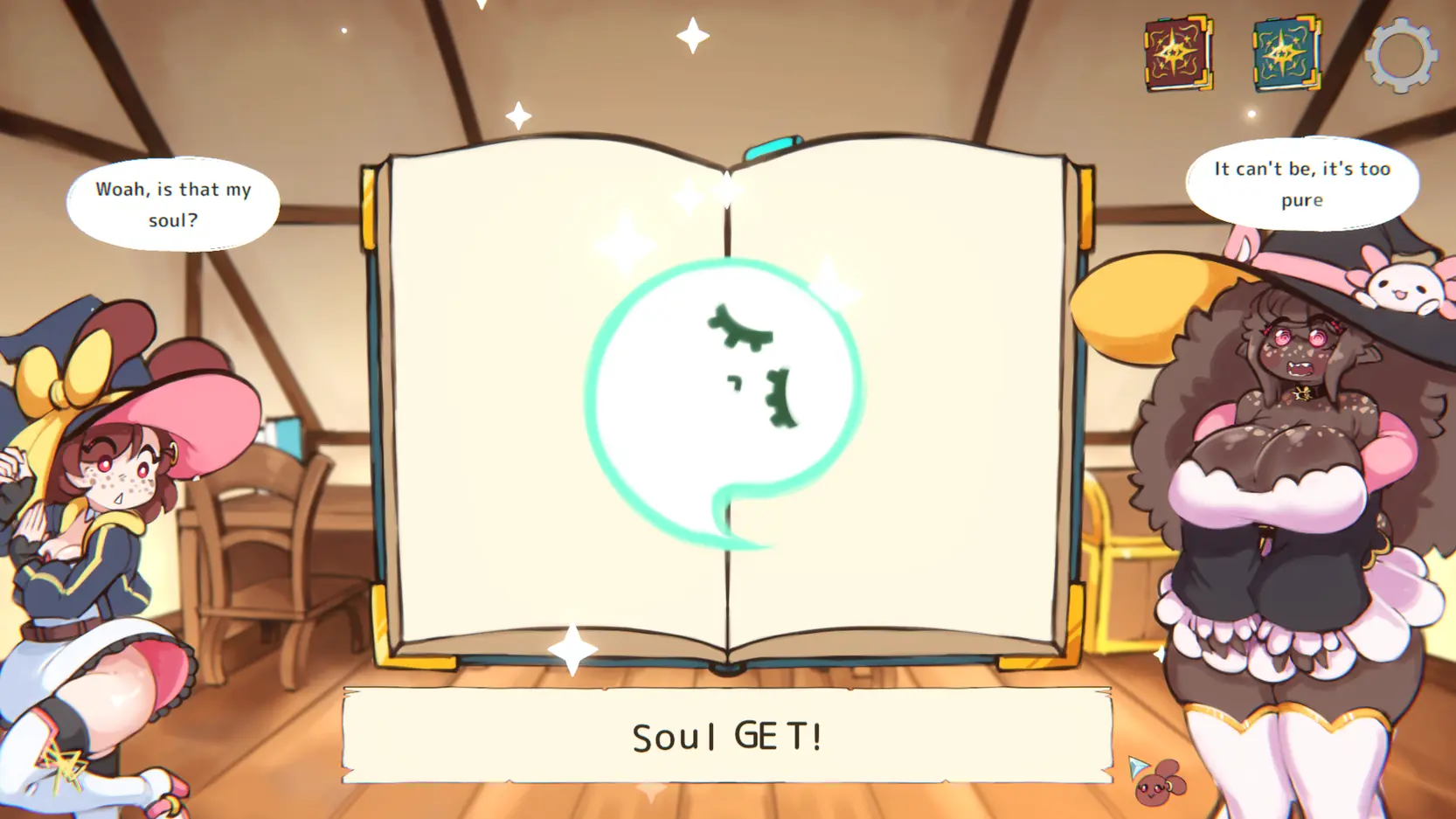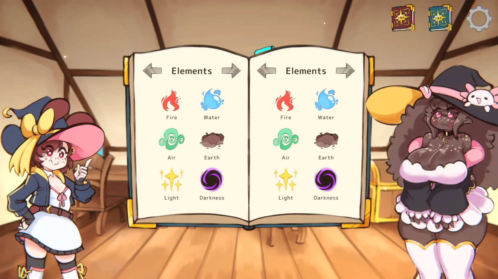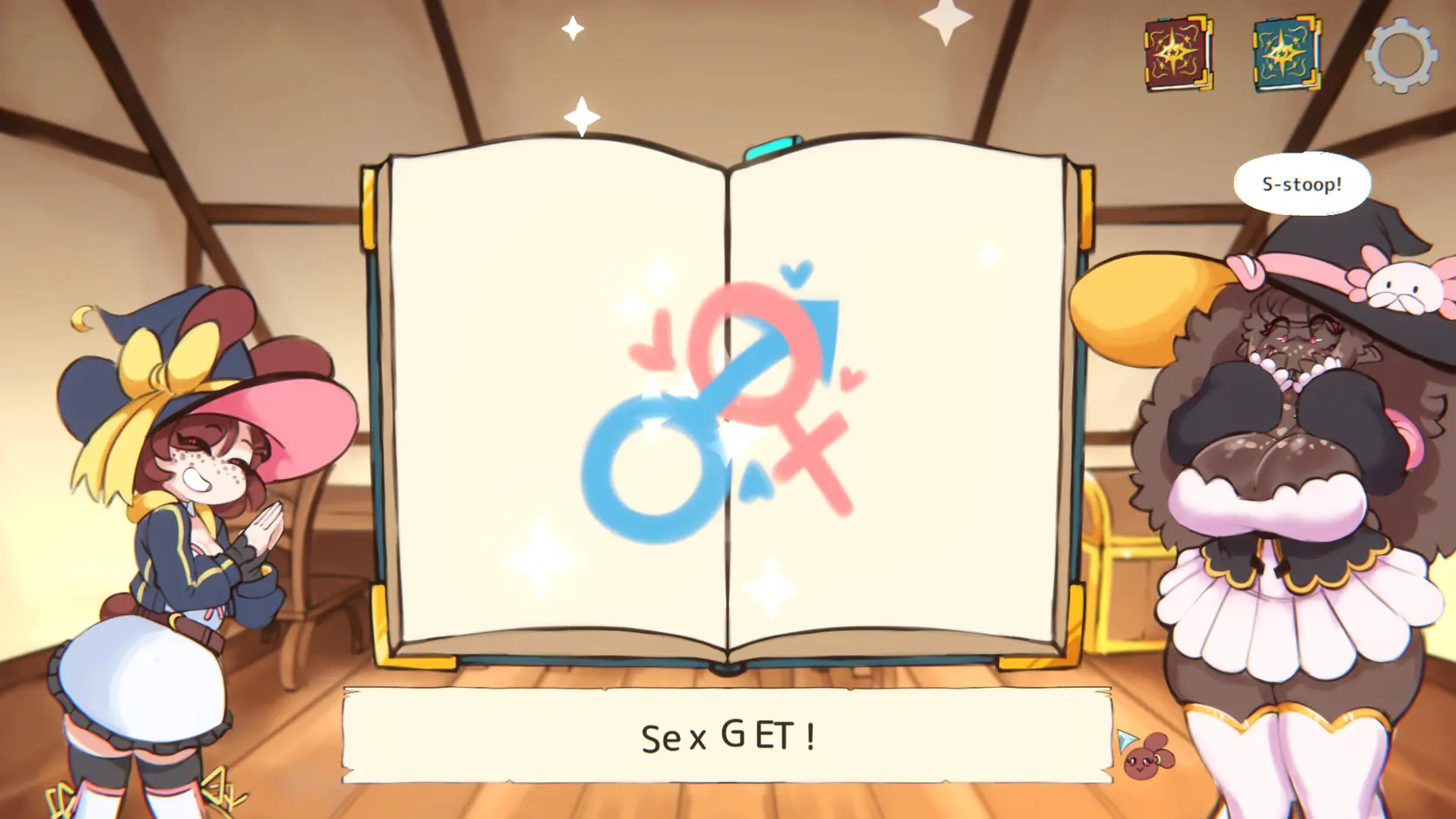 Luna the bunny witch snatched away her master Tinas Magic Book, dragging along her roommate Cinis as a test subject fellow companion on her hijinks. Mix and match various elements to unlock more combinations and spells leading to sexy transformations, such as a Succubus spell or a Puppet spell!