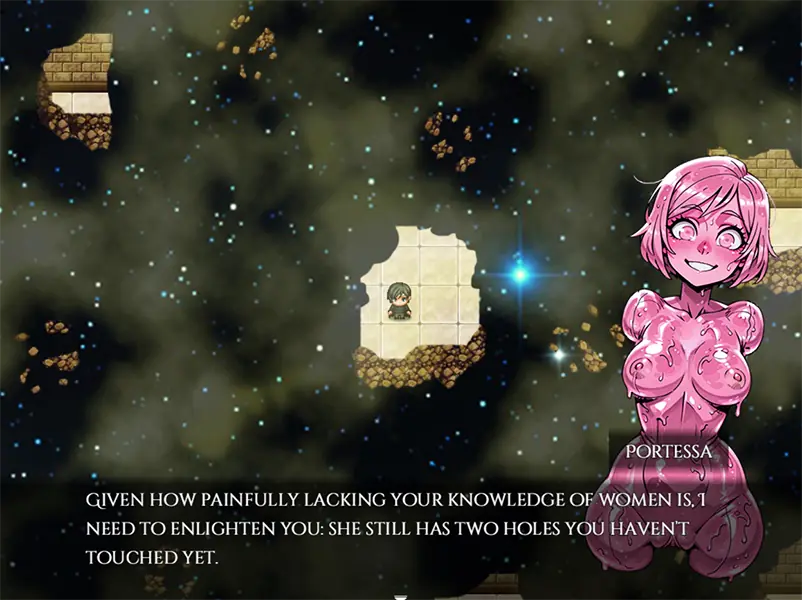 Throughout the story, he meets more and more characters, who can become party members, and they will become part of the world he builds. The combat system is unique: every attack, whether physical, mental, or magical, is erotic and sexual. At a certain point in the story, the player will have the opportunity to capture defeated enemies and train them into obedience using their own methods, making them part of the player’s small realm.​