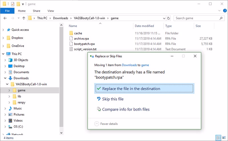 Navigate back to the game directory, and paste the file. (Either right-click in the folder and choose "Paste" or hit Ctrl-V, or Command-V on a mac.)