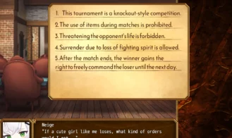 Adventurer Yuni and her lively companion Neige find themselves short on coin, with little choice but to enter the grand martial arts tournament, the Eqttish Arena.
