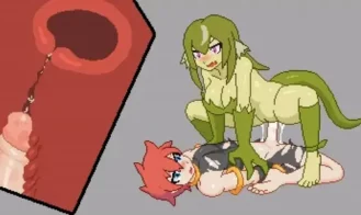 A Lewd pixel art doom-style 1st person slasher platformer game where you have to complete the mission goal and slay monster girls or be caught and fucked​.