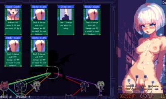 This is a roguelike battlefuck deckbuilder. Travel along the lines, collect cards and defeat your opponents, either by beating them the heck up or make them cum and deal damage by teasing the enemy...